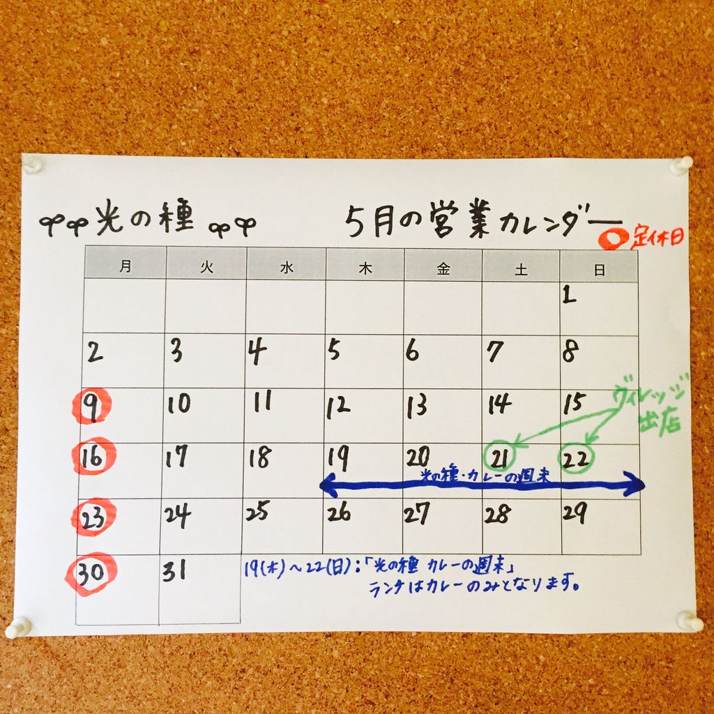 ◎19日(木)〜22日(日)は、光の種 カレーの週末♩